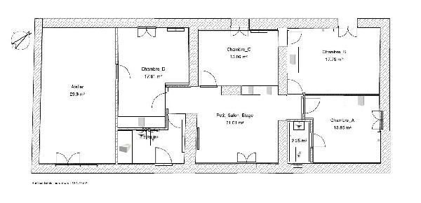 A l'étage : chambre 2 avec pièce d'eau et WC, cheminée, chambre 3 avec balcon et cheminée, chambre 4, chambre 5 + très grand atelier pouvant servir de bureau, bibliothèque, atelier d'artiste, salle de jeux, et enfin salle de bain avec bidet, baignoire, lavabo et WC, sans oublier le grand palier servant actuellement de salon avec coin TV.